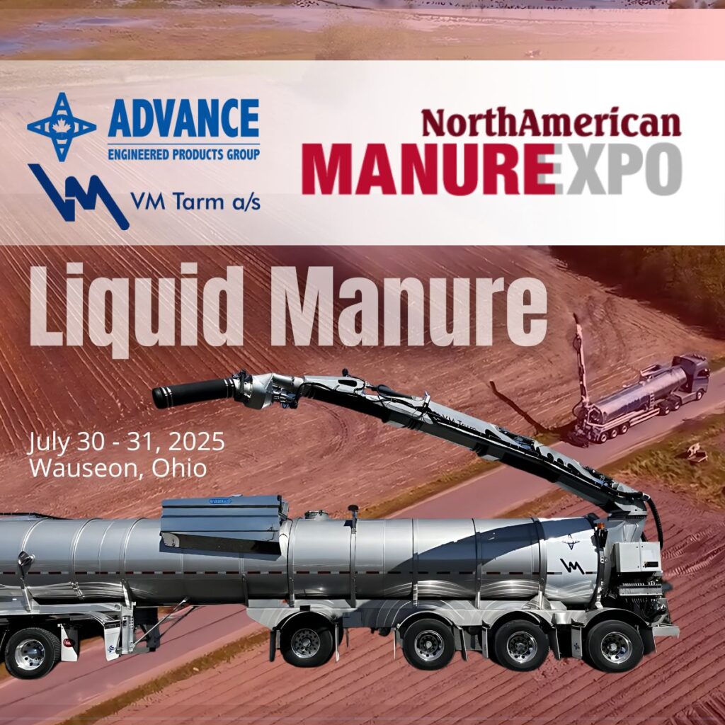 Venez découvrir les dernières innovations en matière de remorques-citernes à lisier liquide ! ADVANCE et VM Tarm a/s se rendent au North American Manure Expo du 30 au 31 juillet à Wauseon, Ohio, où nous démontrerons les capacités de notre dernière conception de remorque-citerne.